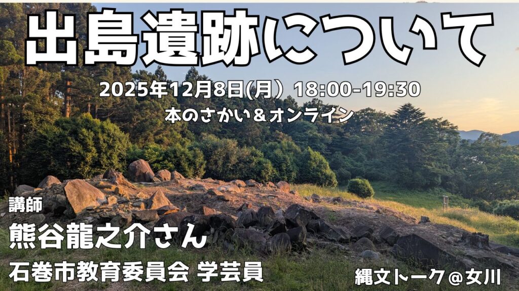 12/8(月)18:00から、石巻市教育委員会の学芸員、熊谷龍之介さんにお越しいただき、出島遺跡についてお話をいただきます!