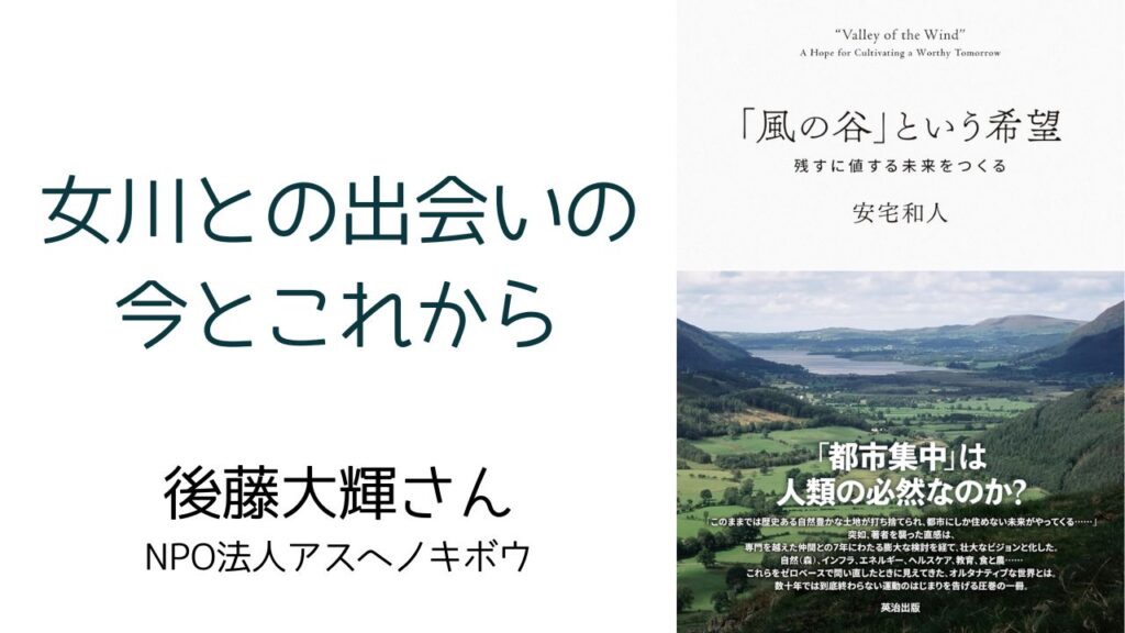 2026年3月2日(月)18:00-、ゲストに、後藤大樹さん(NPO法人アスヘノキボウ)をお招きして、女川との出会いの今とこれからを考えます。